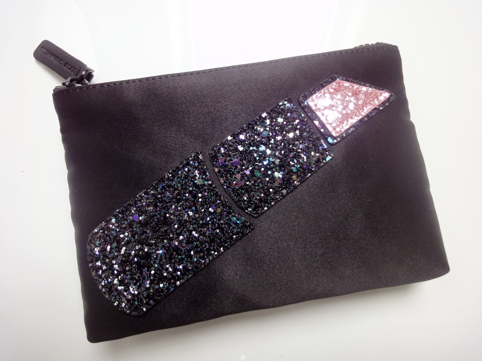 Now let's stop and address how stinking awesome my make-up bag is! Super handy for easily getting my kit to the mirror in the morning as I don't do my make-up anywhere near my make-up drawer (yes, it's a drawer but mostly unused products like eyeliner). It;s from Lulu Guinness for Asos and I love it. Who wouldn't with the smooth satin finish, hot pin interior and fun, glitzy emblem of make-up bag; the lippy.